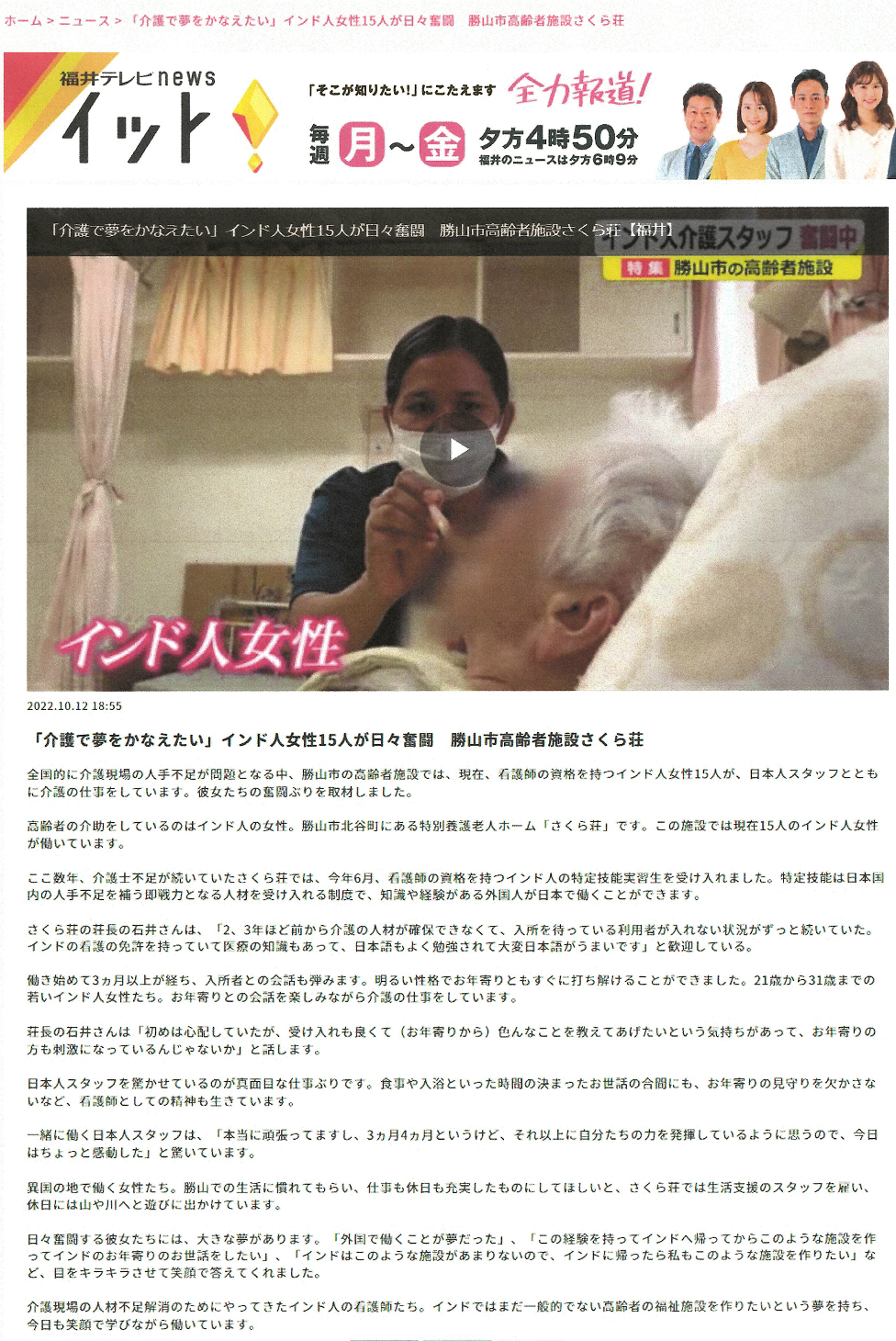 福井テレビ News イット! でさくら荘インドスタッフの奮闘の様子が紹介されました。