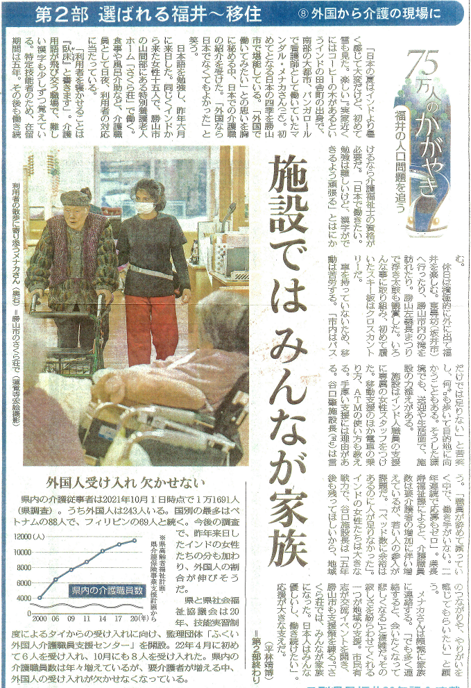 福井テレビドキュメンタリー「私たちインドから来ました」にて、さくら荘のインドスタッフが紹介されました。